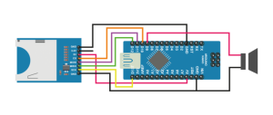 #include <SD.h> #include <TMRpcm.h> TMRpcm tmrpcm; void setup(){ tmrpcm.speakerPin = 9; int SD_ChipSelectPin=10; Serial.begin(9600); if (!SD.begin(SD_ChipSelectPin)) { Serial.println("SD fail"); return; } tmrpcm.volume(10); tmrpcm.play("1.wav"); } void loop(){ }Да, прошу прощения.Не работает.Я подумал, что проблема в этом, но как раз прочитал о том, что программа продолжает работать после предупреждения.