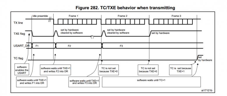 Беда в том, что "программист" не знает, когда последний бит ушёл из УАРТа.