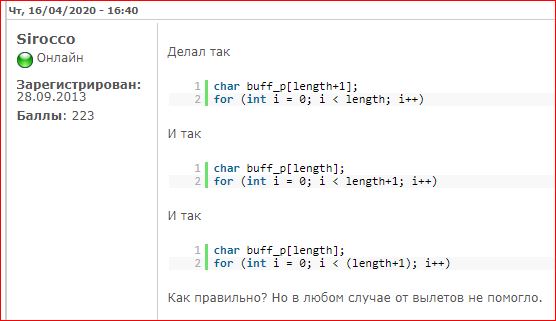Смысл правки был в том. чтоб не писать за границу массива... для этого надо увеличить массив. А вы... увеличили данные. Теперь ваш код распахивает память дважды